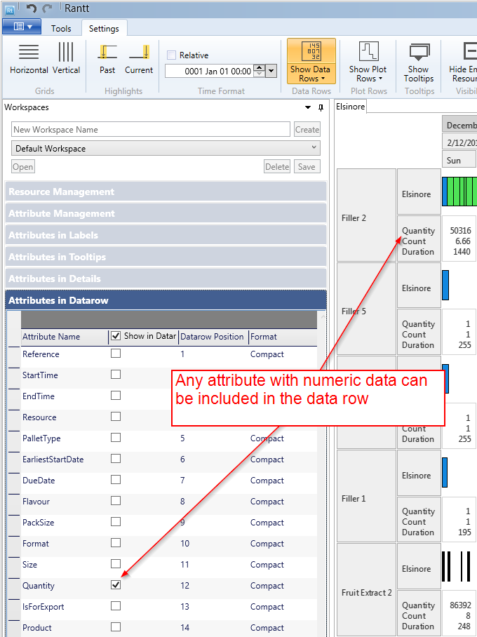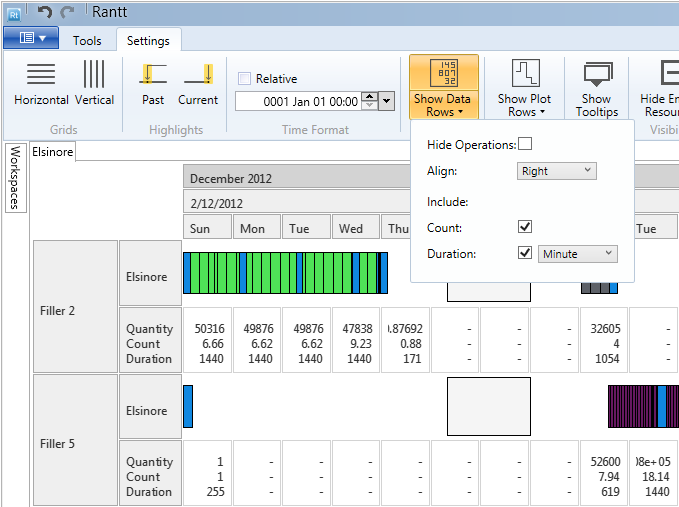 With data rows enabled you will see a new row for each resource which will give you some statistical information about the operations contained within a time interval.