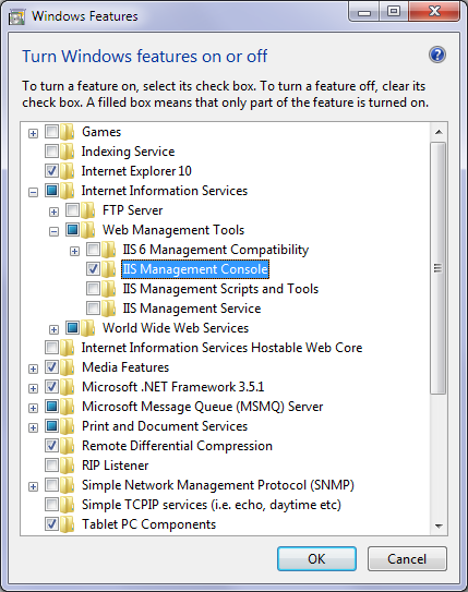 It is essential to be able to configure your webserver. Make sure you enable the IIS Management Console.