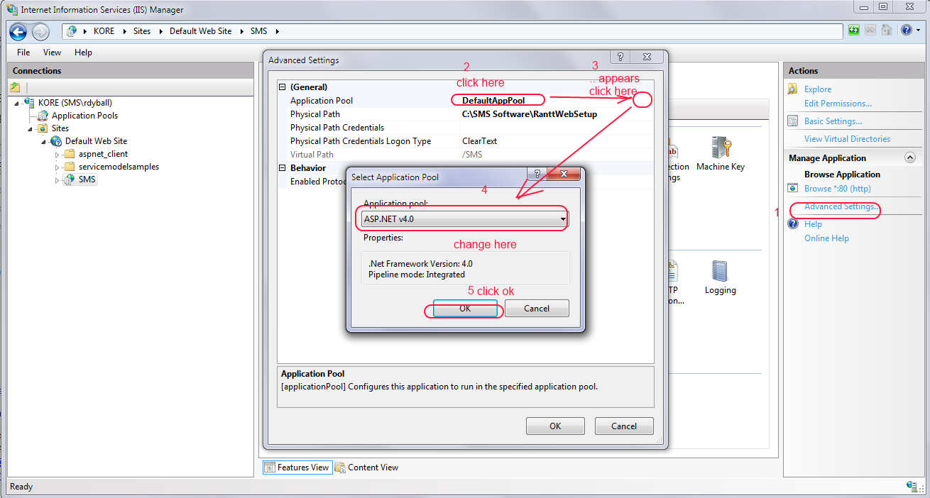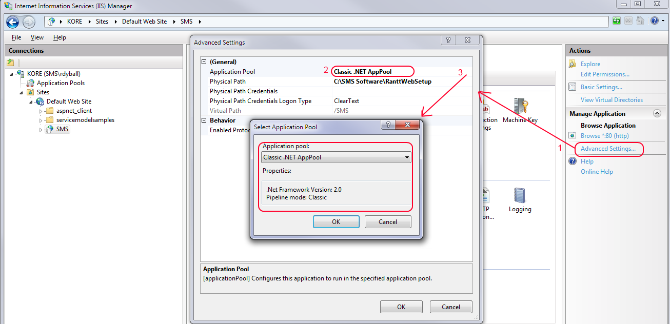 This means subsequent installations revert back to ASP.Net 2.0; to correct this issue follow these steps: Changing the Application Pool used by Rantt Web Host