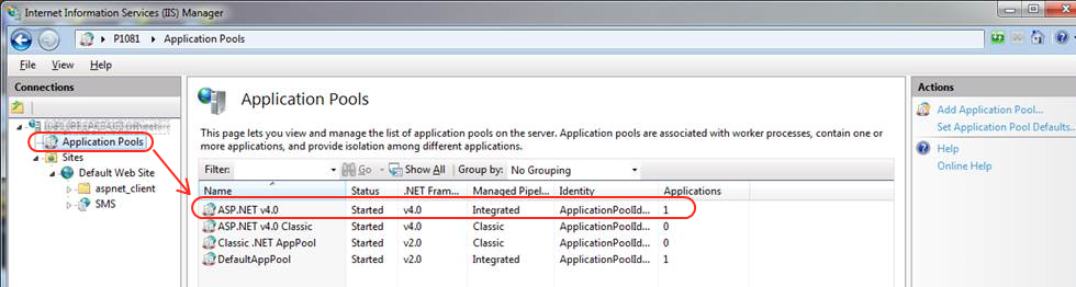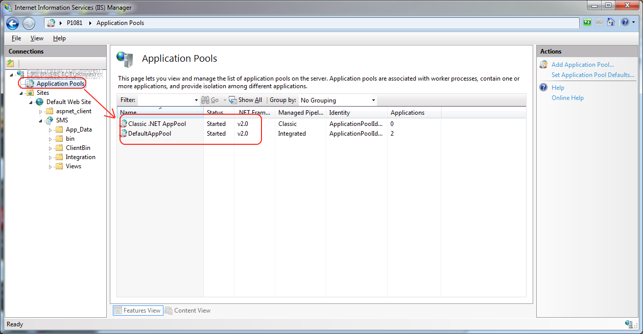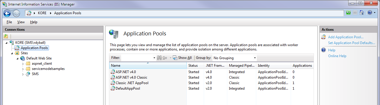 If you have only .Net 2.0 Application Pools, your application pools will be like this, with just two .Net 2.0 application pools shown:
