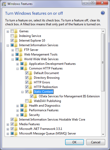 Note: depending on other features you have installed, you might find the “Static Content” selection has embedded options; enable these too, if you have them.