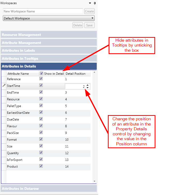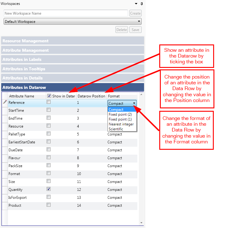 - Show or hide the attribute from the Data Row, by ticking or unticking the check boxes.