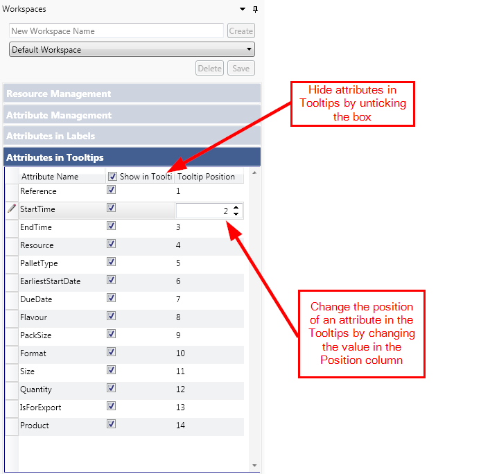 The Attributes in Tooltips panel allows you to: