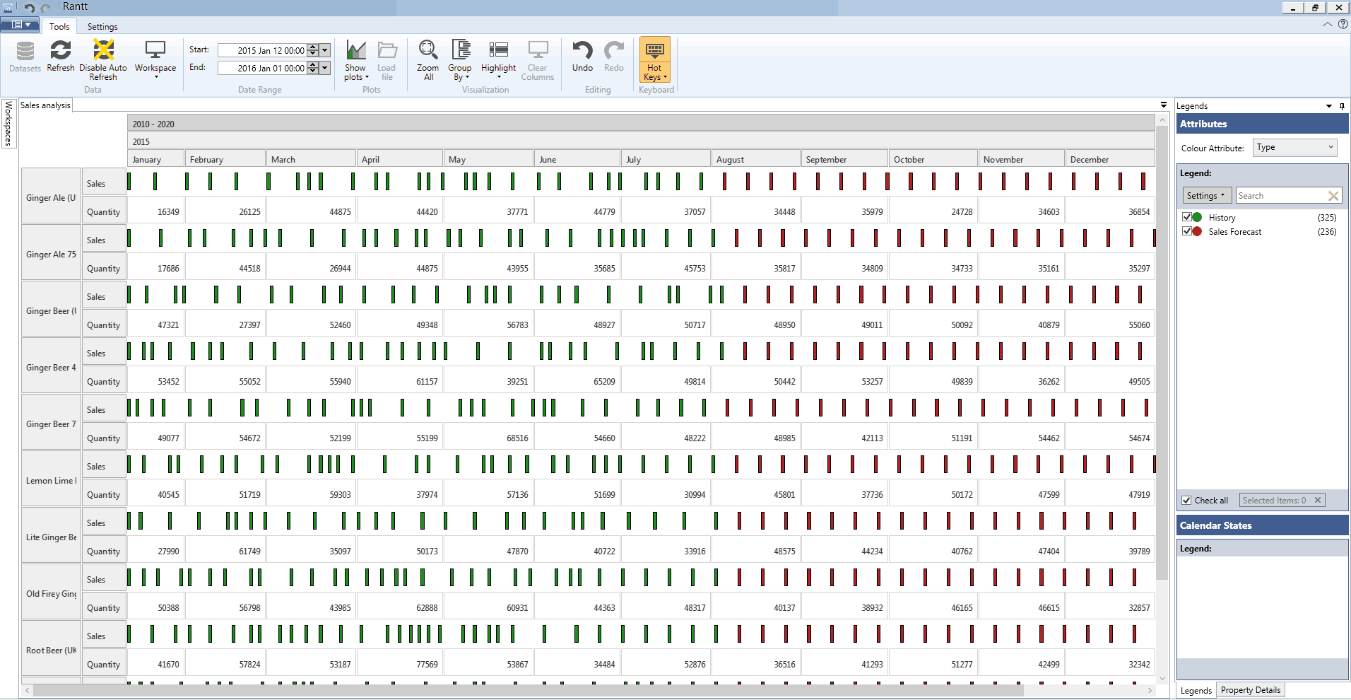 Viewing time stamped data in a grid gives you a feel for the values. Rantt takes understanding time stamped data to a whole new level by showing you the temporal nature of the data.